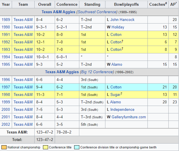 R.C. Slocum’s Record at Texas A&M